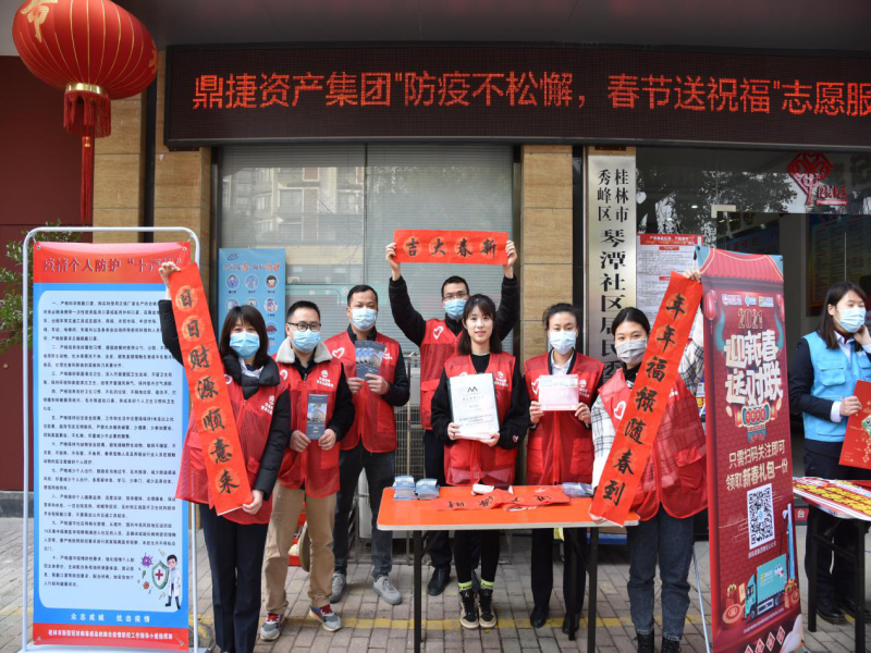 为落实新时代文明实践建设工作,借助“主题党日+”的形式推动志愿服务制度化、社会化,2月7日,鼎捷资产集团组织全体党员携手琴潭社区开展“防疫不松懈、春节送祝福”志愿服务活动。活动现场,党员们将手...