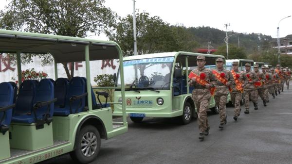 日前,5辆搭载“子弟兵”的新能源观光车从阳朔县民兵军事训练基地出发,沿阳朔街道进行游行欢送活动。此次欢送活动中,阳朔山水公司积极参与并承担接驳任务,为即将踏上军旅生涯的新兵们送上最真挚的祝福...