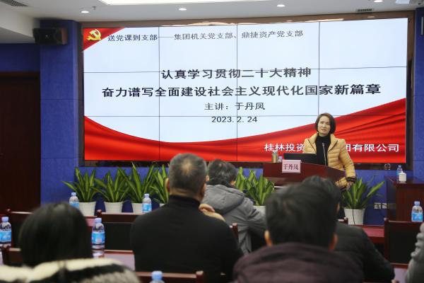 2月24日,集团公司党委委员、监事会主席、市国资委党的二十大精神宣讲团成员于丹凤在集团公司总部开展党的二十大精神专题党课宣讲,集团机关党支部、鼎捷资产集团党支部党员、入党积极分子参加此次宣讲会...
