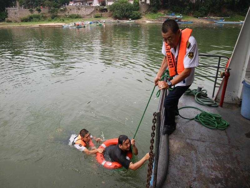 “有游客落水了,请求紧急救援!”6月23日,桂林海事局组织鼎翔旅游等相关部门、企业在磨盘山码头开展2021年漓江旅游客船水上突发事件应急救援演练。整个演练过程,鼎翔旅游各岗位人员各司其职、听从指挥...