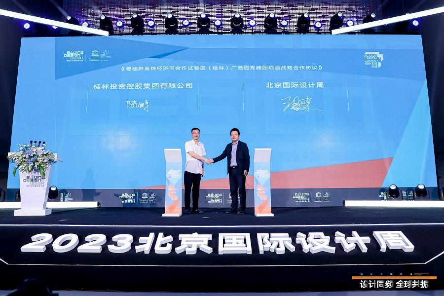 北京国际设计周是由中华人民共和国文化和旅游部、北京市人民政府共同主办的国家级大型年度文化活动,是亚洲规模最大的设计周。签约仪式上,粤桂黔高铁经济带合作试验区(桂林)广西园秀峰园项目工作委员会代表对项目进行了发布介绍。双方表示,此次签订战略合作协议后,将围绕创意设计产业与人才孵化平台、打造完整的数字文创产业链条等方面开展合作,在桂林共同构筑集生态风景、城市文旅、绿色经济、创新产业、数字化元宇宙为一体的城市生活画卷。