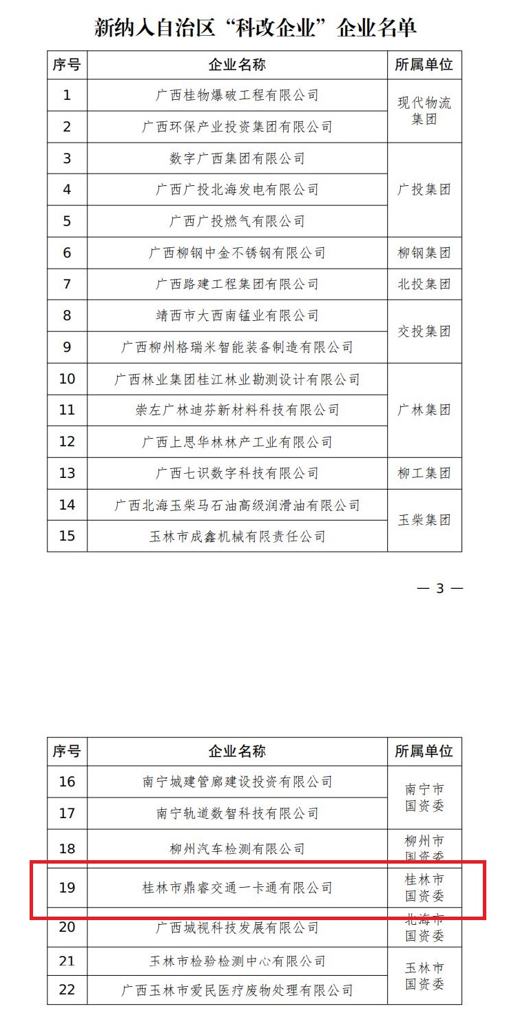 近日,为全面落实国有企业改革深化提升行动各项要求,推动更多企业通过“科改行动”深化市场化改革,自治区国资委发布了关于充实扩围自治区“科改企业”的通知,并公布了新纳入“科改企业”企业名单,pa捕鱼官方网站集团下属的鼎睿交通一卡通有限公司榜上有名,获批纳入自治区 “科改企业” 企业名单。