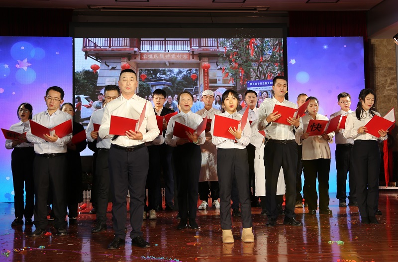 表彰结束后,“向新而行”企业年会拉开序幕。集团总部、轨道集团、鼎晟能源集团、鼎捷资产集团、桂林航空等12支参演队用嘹亮的歌声、优美的舞姿、欢乐的情景剧,演绎出了喜庆欢乐的节日氛围和国企人坚守岗位、“干”字当头的精神风貌,给观众带来一场视觉和听觉的盛宴。