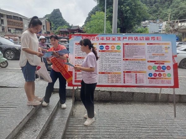 ▲阳朔山水公司在公共场所设立安全生产月活动宣传栏,面向公众宣传安全知识。(照片拍摄:陆文彬)