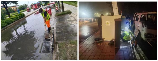 面对灾情险情,机场路公司、阳桂公司第一时间组织应急抢险人员和应急设备,开展道路抢险工作,对管辖路段进行安全布控和疏通排水作业。
