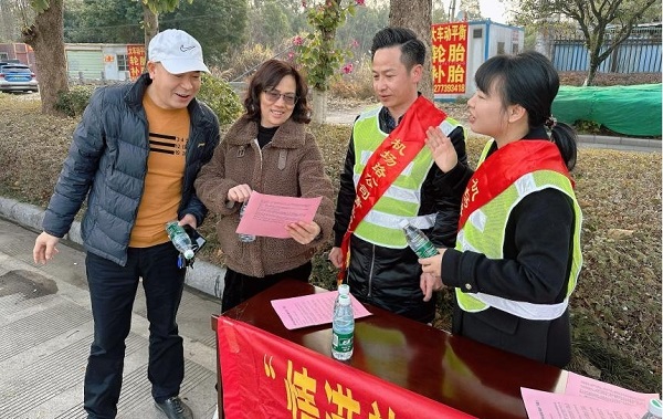 “请问附近有没有汽修中心呀,我的车好像有点问题了。”“您沿着机场路往前再开4公里这样,就有修车的地方。请小心驾驶,祝您新年快乐。”活动现场,党员志愿者们在收费站出入口附近为过往乘客提供出行咨询,还贴心地送上免费饮用水,让返乡群众感受到浓浓暖意,也进一步提升了广大司乘人员对收费站工作的认同感,传递了积极向上的社会正能量。 此外,活动中志愿者们还发放了道路交通安全宣传资料,并向过往司乘人员耐心讲解道路交通安全有关法规,提升了司乘人员安全意识,为“春运”出行安全做出贡献。