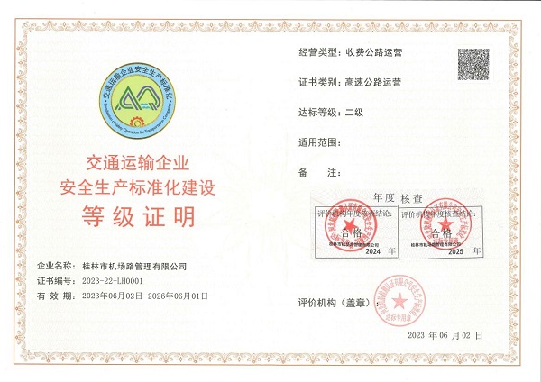 近日,pa捕鱼官方网站集团机场路公司传来喜讯,顺利通过自治区高速公路管理局组织的高速公路运营企业安全生产标准化二级达标复评审核。这一重要成果,标志着公司在安全生产管理领域再攀高峰,迈出了坚实且意义深远的一步。