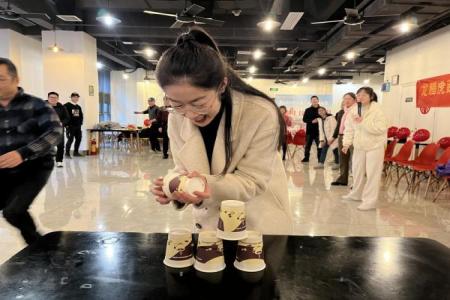 活动现场欢歌笑语、喜气洋洋。蒙眼吃香蕉、叠杯子、听命令抢水瓶、极速传递……一系列精彩的比赛过程中,员工们热情高涨,配合默契,充分发挥团队协作精神,出色地完成了一个又一个的任务。活动现场不仅有游戏项目,还准备了抽奖、互动表演、龙年纳福等新春民俗特色活动,让员工在浓浓的年味里感受多样文化生活。
