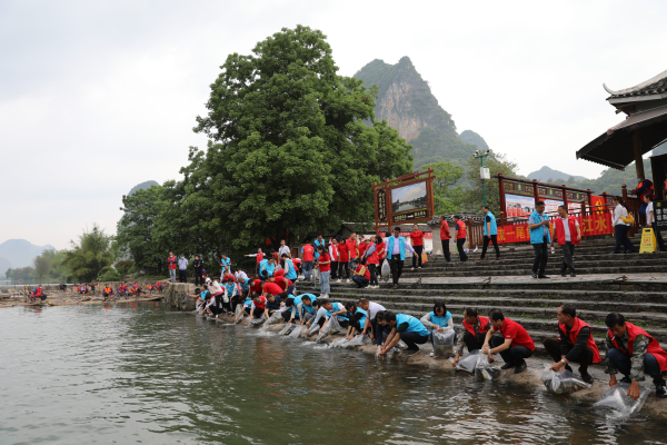 为深入贯彻落实习近平总书记考察漓江时的重要指示精神,践行“绿水青山就是金山银山”的生态文明理念,保护好桂林山水,自2022年起每年4月25日设为“漓江保护日”。4月25日首个“漓江保护日”,阳朔县高田镇人民政府、阳朔县遇龙河公司、阳朔山水交运公司三方联动,在遇龙河畔开展“漓江保护日,遇龙河在行动”主题活动,相关单位及各界人士100余人参加活动。