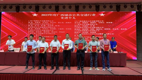 2023年11月12日,广西道路运输协会城市公共交通分会2023年工作会议在防城港市召开,会议表彰了广西城市公共交通行业的“先进集体”、“先进线路”和“先进个人”。桂林市轨道交通集团公交公司荣获广西城市公共交通行业“先进集体”荣誉称号,公司11线路、18路、85线路荣获“先进线路”荣誉称号,柳杰、龚慧强、李华庆、肖秀娇、卜延锋、李鸿明6位同志荣获“先进个人”荣誉称号。