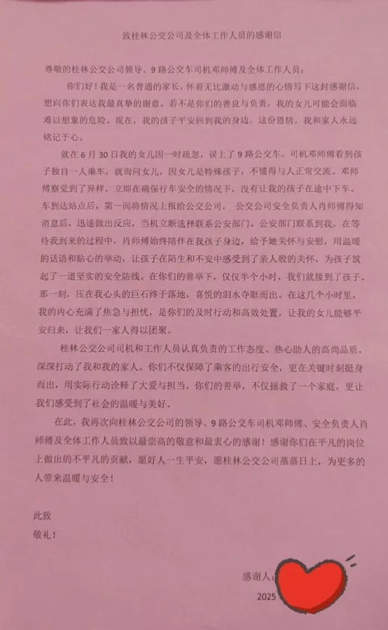 “其实就是举手之劳。”面对感谢,邓雪岗朴实地笑了笑,“我们每天握着方向盘,载的是乘客,更是沉甸甸的责任。”在桂林公交系统,这样的故事并非个例:驾驶员帮老人提行李、为突发疾病乘客紧急送医、拾金不昧归还贵重物品……他们是城市流动的风景线,更是穿梭在街巷中的“平安守护者”。