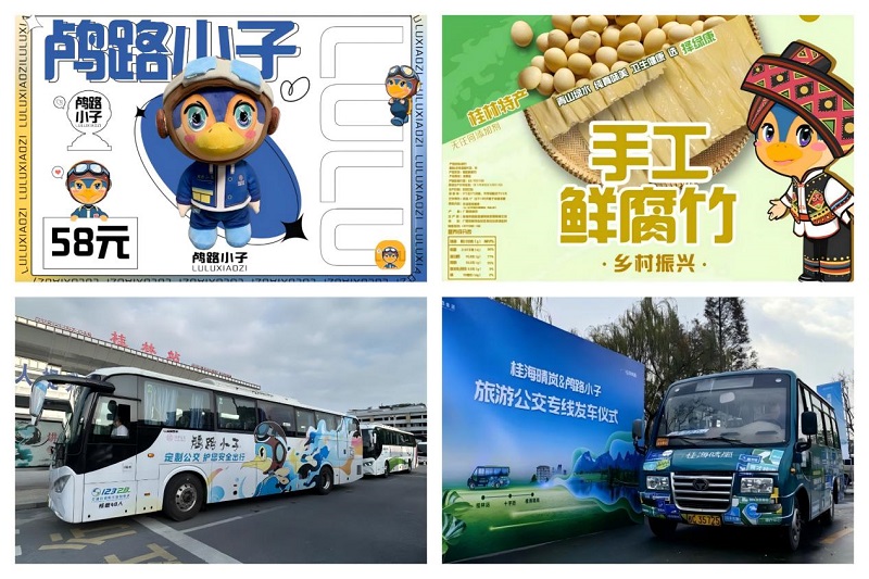 以漓江鸬鹚为原型的“鸬路小子”IP持续发力,7条特色旅游专线、200余台定制车辆投入运营,“鸬路出行”小程序推广非遗团扇等75款文创产品,注册用户近6万。通过参与“兴桂杯”数字乡村直播大赛、消防科普短视频创作等活动,公交品牌从“行业窗口”升级为“文化传播先锋”。