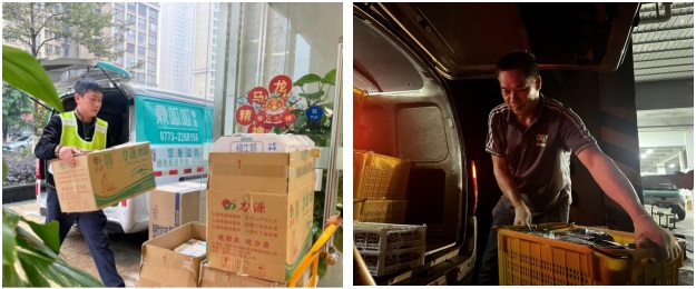 城市之外,鼎和晟供应链公司还将配送范围延伸到县域、村镇,车辆租赁、物流配送业务覆盖桂林全州、荔浦、资源、平乐等区域。在灌阳县,“鼎呱呱”新能源物流车为村民养殖的3000余斤鲟鱼、加工的1000余斤红薯粉打通了物流配送“最后一公里”,在资源县,“鼎呱呱”新能源物流车将当地的高山蔬菜等特色农产品运向城市,在助力乡村振兴的道路上风雨无阻、绿色前行。