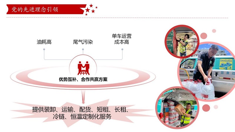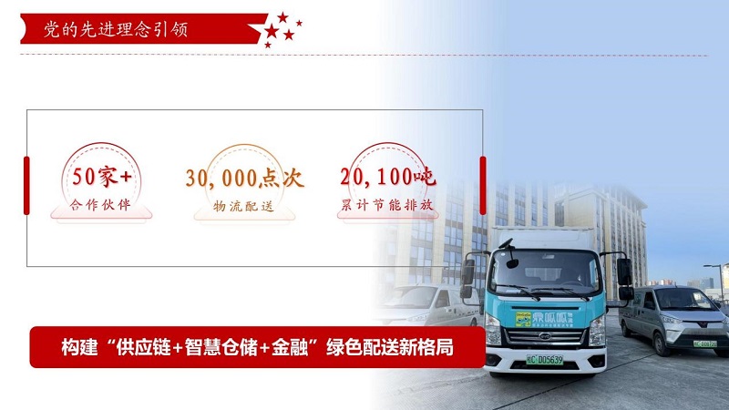 鼎和晟供应链党支部深刻认识创新驱动发展的重要性,积极响应国家“双碳”目标,以钉钉子的精神打好改革攻坚战,将绿色发展理念融入企业战略,算“经济账”的同时还算“环保账”,为经销商提供定制化绿色服务。截至目前,合作伙伴超50家,配送点次近3万次,上半年累计节能排放约2.01万吨,构建起绿色配送新格局。