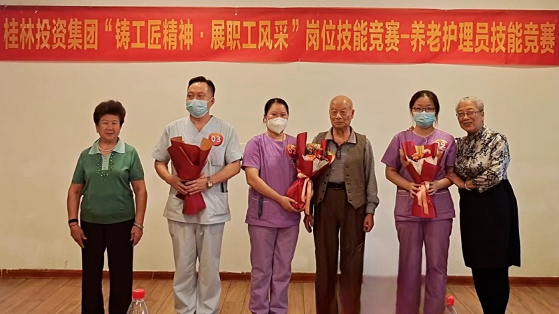 ▲张裕香(左三)获得养老护理员竞赛一等奖
